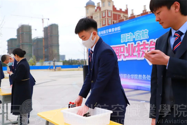 在现场,主持人提问关于民航知识的专业问题,同学们踊跃抢答。业务知识比拼作为高度职业化民航员工的专业技能,展现学子扎实的专业素质。