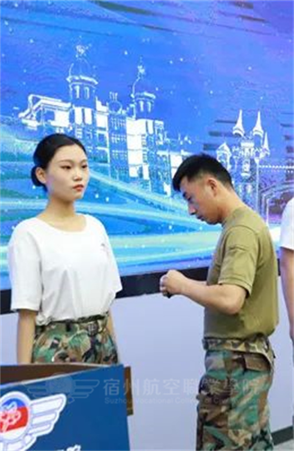 宿航院军体教官关振东任命王旭🏏、孙密密🔋👩🏿⚖️、赵家福3名同学担任此次活动实习教官并授予臂章🌒。