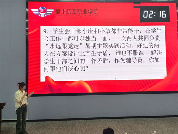 谈心谈话主要考察辅导员对学生特征🔰🤷🏽♀️、学生成长成才规律的了解把握程度,以及对学生的教育引导能力🧑🏻✈️、解决理论困惑和实际问题的能力等。比赛现场,参赛辅导员和助演学生你来我往💅,处处智慧交锋📇、敏捷应对🙌🏼,将辅导员的日常工作场景生动、鲜活的再现。