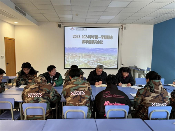 2024年1月10日下午宿航院召开2023-2024学年第一学期期末学生教学信息员会议,学院纪委书记、督导委员会副主任✊🏿、科研处长高贵珍,学院纪委委员、督导委员🫅🏽、教务处长郭焕银,学生教学信息中心负责人朱珠参加会议。