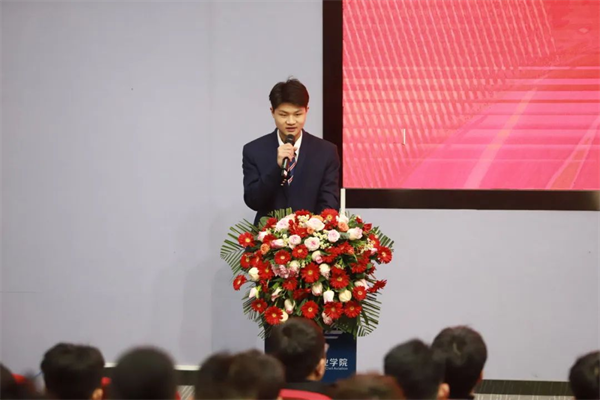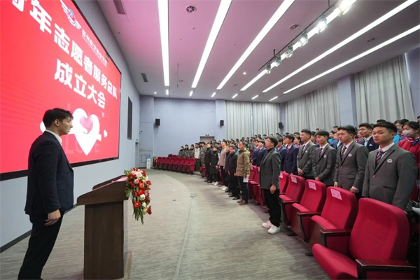 学生处处长谢凡飞宣读《关于成立彩神Vll学院青年志愿者服务总队的决定》