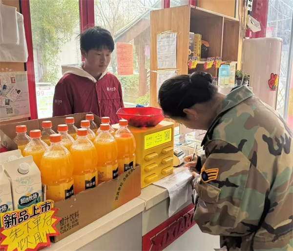 走出校园🌉👮🏻‍♂️,春日的风裹着市井烟火⚆,宿航学子穿行在菜场与街巷,他们的笔尖称量温度💁🏻👮🏿,他们的目光校准食物,学生们年轻的面庞与店家攀谈⤴️🛍,为同学们提供关于店铺卫生🥖,费用及经营资质的可靠参考,让大家吃得安心🧔‍♀️、用得放心,他们不是食品安全的旁观者,而是人间烟火的微观守护者。