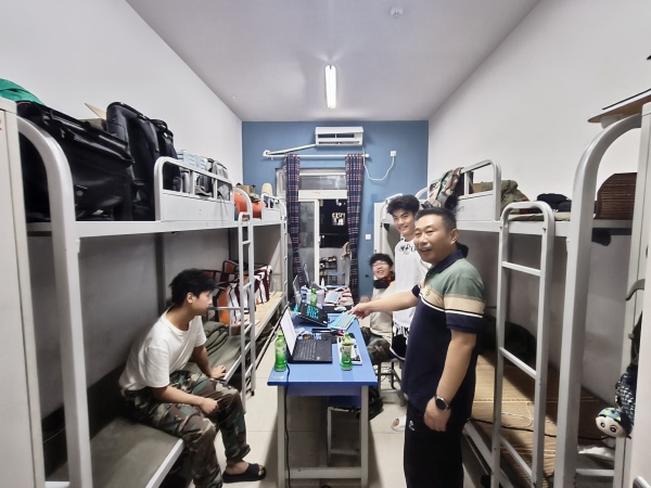 夜幕降临🧑🏻🦲,王院长和苏炜老师再次走进学生宿舍。每到一间宿舍,王院长都热情地和同学们打招呼,仔细查看宿舍的卫生和安全设施𓀆。他坐在同学们中间,与大家拉家常、聊学习👩🦯➡️、谈生活🐽,关切地询问同学们在宿舍生活中是否遇到困难👩🏭,对学院的管理和服务有什么意见和建议👩🏻🦼。