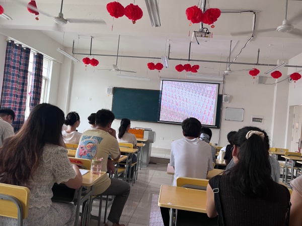 当天上午,学院教师们齐聚在A305教室🏃➡️,神情专注地盯着大屏幕,等待阅兵仪式开始。与此同时𓀕,学院各班级教室内,其他学生也在辅导员的组织下✏️,整齐就座,通过网络直播,准备见证这一庄严时刻。