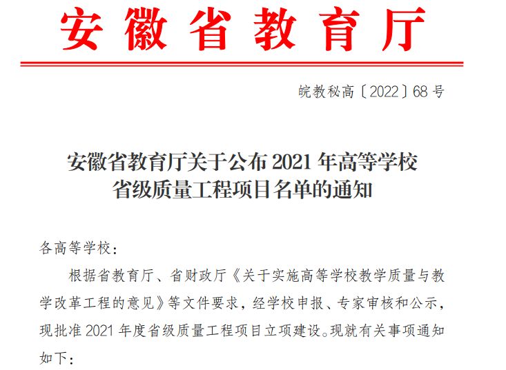 安徽省教育厅公布了2021年高等学校省级质量工程项目立项名单,我校3个项目获批立项建设🧖🏿♀️,其中产教融合实训基地1个,教学研究项目重点1项、一般1项🤦🏻。
