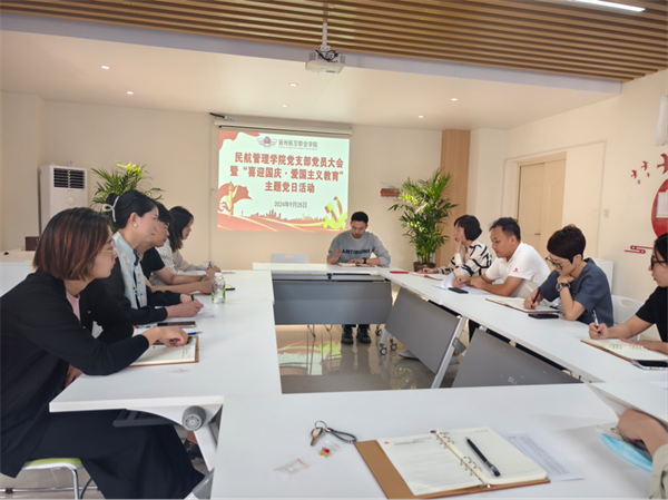 2024年9月25日下午16时20分🧑🏻🎓,民航管理学院党支部在党群活动中心隆重召开了全体党员大会暨“喜迎国庆·爱国主义教育”主题党日活动🤒。大会由支部书记解伟主持,全体党员参与。