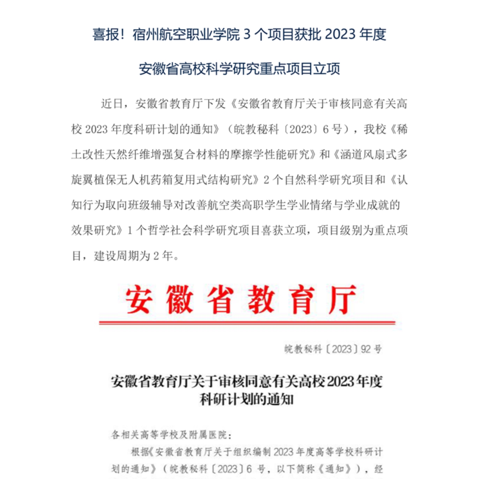 喜报——彩神Vll学院3个项目获批2023年度安徽省高校科学研究重点项目立项