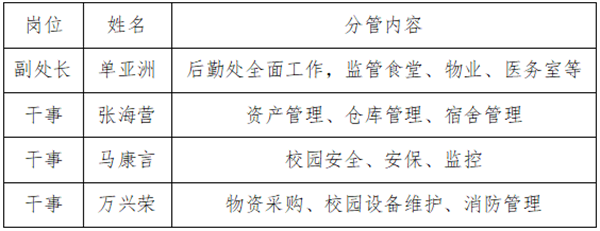 6.负责学院食堂、医务室和物业的日常监管工作。