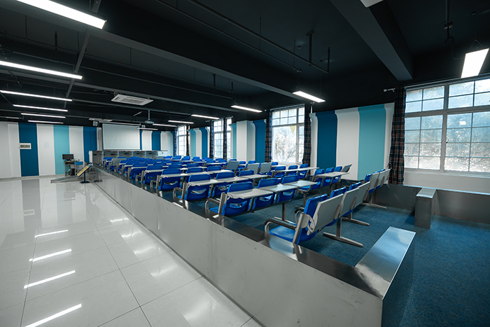 开放模拟舱为单(双)通道机型,共分为飞机前门区段、客舱段和后门区段三部分。后门区段和前门区段设置的内容大体相同⚇。三段设置分别满足学生对客舱设备🕐、客舱服务组件👩、厨房设备💠、厨房服务组件、及服务组件的学习需求👨🏻🌾。同时能够满足学生对经济舱、头等舱旅客服务标准及流程的学习。