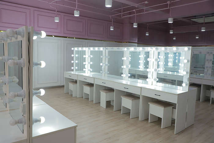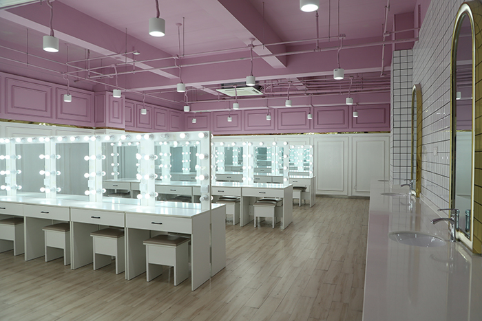 形象设计与化妆实训室。此间实训室占地面积约86平☝🏼,可容纳30名学生进行教学实训👎🏼,专供化妆美容使用。化妆台由化妆镜、化妆台面、化妆椅及相应的灯具构成。化妆镜通常较大,使化妆者清楚地看到自己脸部的各个地方。化妆镜专用照明灯装在镜子两边。