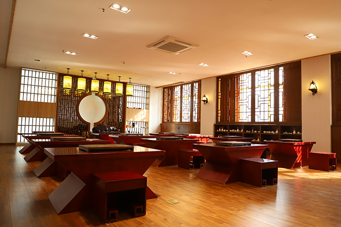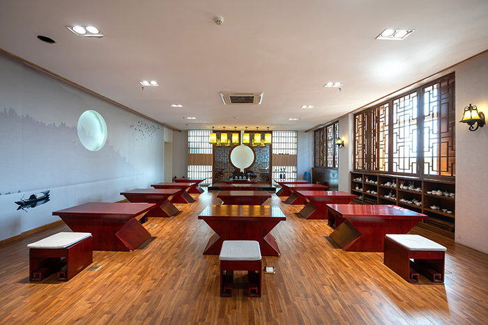 茶艺实训室。主要承担《茶艺》课程的教学和训练,主要服务于酒店管理、旅游管理等。以培养学生的茶艺技能,提高学生的文化修养,陶冶学生情操。实训室能容纳30名学生进行茶叶知识、基本茶道训练等🤞🏼,同时具有茶艺师社会培训和职业技能考评的功能,茶艺实训室主要开设的项目有:1、茶具和茶叶的识别训练;2、茶具的使用训练✌🏼;3、茶叶的泡制和基本茶道训练💇🏼‍♀️。实训室内设备配置齐全,拥有木茶台、各类茶具、博古架🏨🎳、饮水机等设备𓀋。