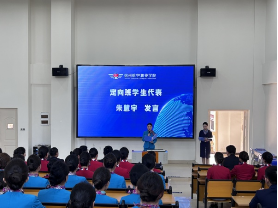 首先由定向班学生代表朱慧宇同学进行发言,感谢学院为学子们提供一个深入了解国际航空产业领域的机会与平台。她表示,作为定向班的一员🙆🏿♂️,将积极参加定向班的技能培训🙍🏽♂️,珍惜本次提升机会🧘🏻♂️,认真对待各项课程,遵守学院各项规章制度及要求,同时也规划好自身未来,做好就业准备💆🏿,争取早日成为航空产业的中坚力量。