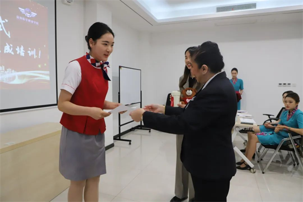 结业证书颁发环节🤹🏻‍♂️,中新国际航空产业学院院长丁奕华为同学们颁发结业证书。新翔集团培训讲师为最佳学员史美云颁发荣誉证书。