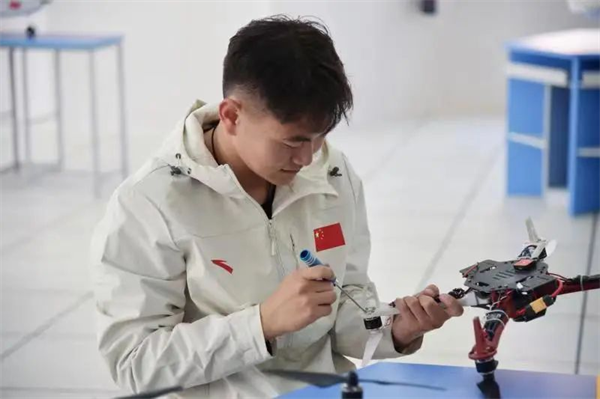 2021年因为疫情的原因,王树森放弃了前往马来西亚理科大学求学的机会,喜欢研究🌕、组装机械设备的他👩🏼💻,毅然决然的踏进了宿航的大门,并选择了无人机应用技术专业。从开始放弃出国机会时的失落👩🏽🦱、迷茫,王树森在宿航继续成长,学习让他感到安心和踏实。只要在学校,没有课的时间就待在教室学习,时间聚沙成塔,优异的成绩在积累中获得,闪现的灵感在打磨中实现🔓。