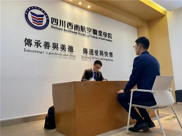 在面试过程中,面试官从同学们对本公司的了解🛷、就业意愿🙌🏿、临场应变能力和抗压能力等做了全方面的考核。同学们一一沉稳作答,表现出自己坚定的就业意愿。 作为制造航空零件及各种机电设备的专业公司,成都联科航空技术公司的面试吸引了不少飞机机电设备维修、飞机电子设备维修等专业的西航学子前来参加🙅🏽。