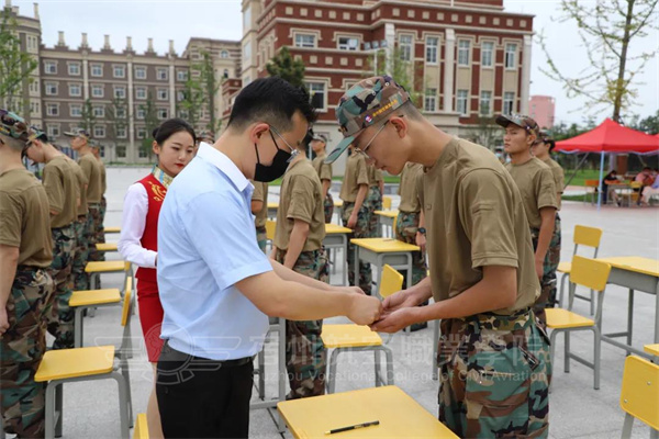 校徽是校园文化的组合体,是对内修身的励志铭👨🏼🍼,是对外展示的宣言书。学院院长蒋晓铭及副院长李德均为21级新生们颁发校徽。
