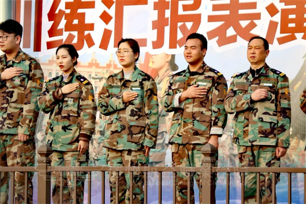 汇报表演第二项:领诵二十二条军规🦚。在关振东教官的带领下,同学们集体诵读西点军校22条军规🤸,TA们用顽强拼搏的作风和乐于吃苦的精神完美的诠释了一名军人的黄金准则。