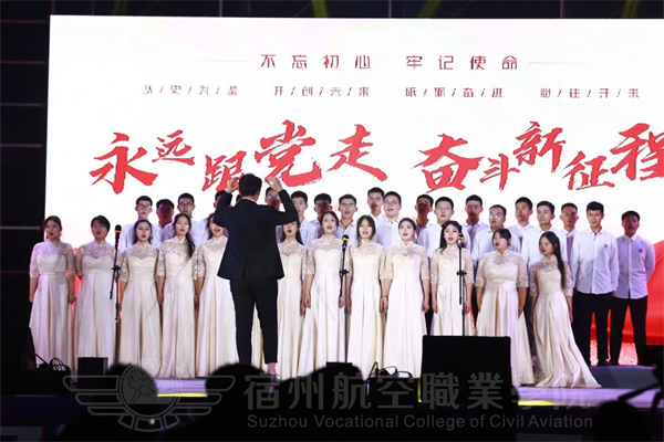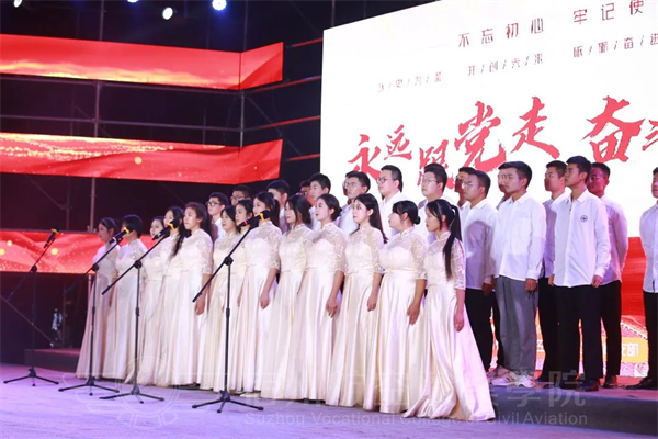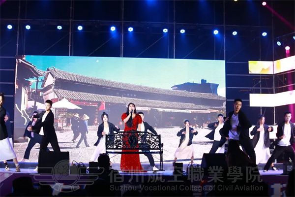 校合唱团的同学们也倾情助阵决赛现场,为大家带来了余音绕梁的合唱歌曲《领航》,现场观众听得如痴如醉。
