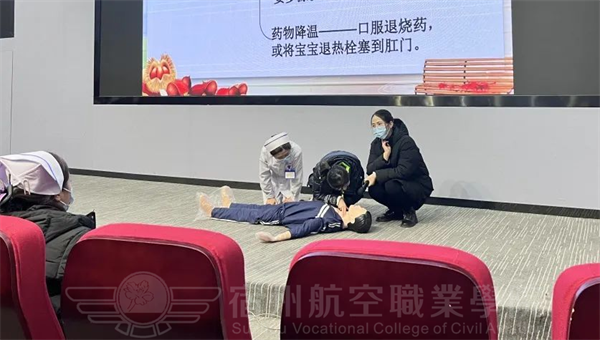 安杰医院护士长给在座的师生操作演示了心肺复苏、海姆立克急救法等急救技能。在练习环节,宿航师生在医生的指导下认真练习心肺复苏的操作要领及技巧。对于一些不易掌握的操作,医生们及时指出问题👨🦰,并“手把手”地纠正,使他们准确地掌握了应急救护知识和技能。