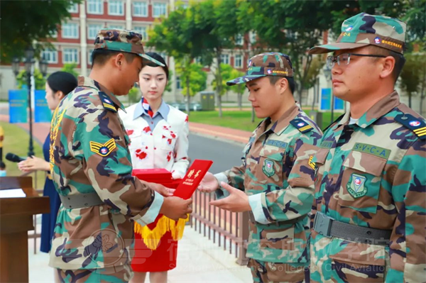 学院学生处处长谢凡飞宣读2023年新生职场启梦训练总教官,并为其授予臂章。职场启梦训练总教官马康言任命各二级学院主训教官、指导教官、实习教官并授予臂章🦡🙆。