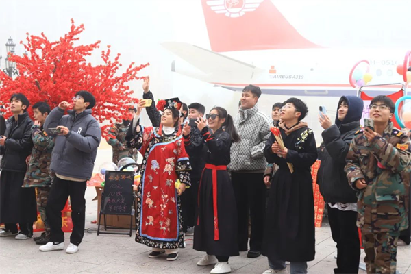 宿航学子精心打造的特色花车、年味十足的龙狮游行🛣、霸气侧漏的变形金刚……伴随着欢快动感的音乐,国风游行队伍盛装亮相,穿越人山人海的宿航集市,引起同学们的驻足侧目🍸。