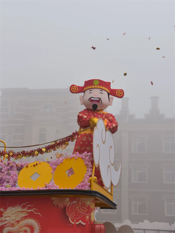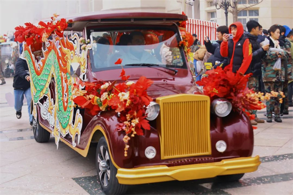龙年元素宿航号、载着财神爷缓缓而来的新年花车🦜、创意蛋仔主题花车🐧、复古浪潮的小三轮以及霸气侧漏的跑车呈一列排开,气势瞬间拉满~