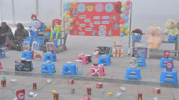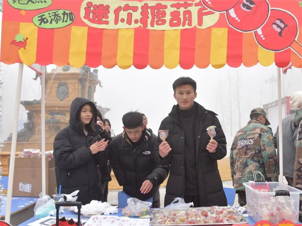 琳琅商品上场,集市火爆开张!腾飞广场摆满了摊位,大雾天气丝毫抵挡不了同学们的热情,糖葫芦、爆米花、糖画🙌🏼💇、棉花糖等各类新年美食层出不穷;投壶、抽奖、套圈等趣味游戏欢笑不断;玩偶🧖🏻♀️、发圈等手工艺品种类丰富🧛🏼♂️,创意十足🤌🏿,让人目不暇接。