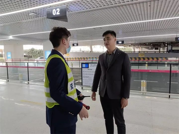 抵达深圳后,谢凡飞在项目部管理人员的陪同下第一时间前往深圳宝安国际机场走访在岗同学🤾🏿♀️🫕,询问工作情况🕥,关心在岗需求🏋🏼♂️。同学们看到谢处长的到来👴🏽,高兴之情溢于言表。
