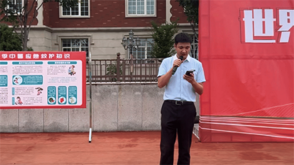 谢凡飞发表讲话:“在这个充满意义的日子里,相聚于此➛,不仅是为了纪念世界急救日🍜,更是为了共同守护每一个生命的宝贵。运动让生活更美好,但安全永远是我们前行的基石。希望通过今天的活动🤌🏼💆🏽,每位学生都能成为自己和他人的守护者。”