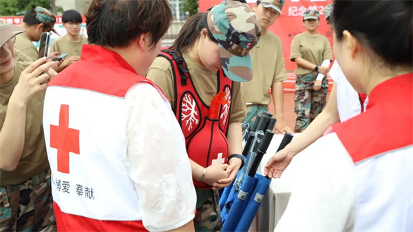 在“心肺复苏演示区”,红十字会指导老师们用浅显易懂的语言👩🎨,围绕日常生活中可能发生的突发事件与相关急救措施,为师生们集中讲解了心肺复苏、AED操作方法等应急救护相关知识,通过“一喊二看三摸四呼救”的口诀,配合清晰的步骤演示和实操练习,让学生深刻理解了黄金四分钟的重要性,掌握了这项挽救生命的基本技能🕴🏻。