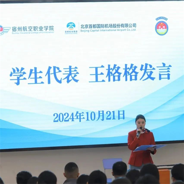 学生代表王格格发言👱🏿☝️,她表示作为宿航的学生,考取安检证不仅是对同学们专业知识和技能的一次检验,更是对我们责任意识和使命感的一次考验。在这一个月的培训时间里,将端正态度,明确目标,制定切实可行的学习计划,合理安排时间💇🏽‍♂️🧇,确保学习的顺利进行,以高度的责任感和使命感去对待这次考证🚴🏼‍♂️。