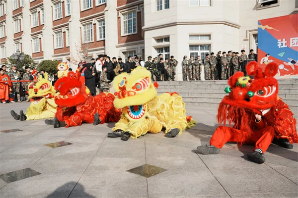 欢呼中,由宿航学子组成的四人舞狮展现着灵活的身姿,一跃一顿,惟妙惟肖,喜庆气息扑面而来……
