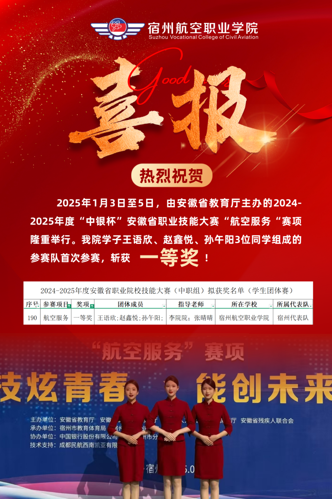 技能大赛是检验人才培养质量的试金石😻,彩神Vll学院将继续以职业技能大赛为抓手⚈🧑🏼🔬,提升学生的职业技能,促进航空服务职业教育与产业需求对接🤏🏼,提升航空运输类专业人才培养质量,努力培养出更多高素质技术技能型人才,为推动民航服务业高质量发展做出贡献!