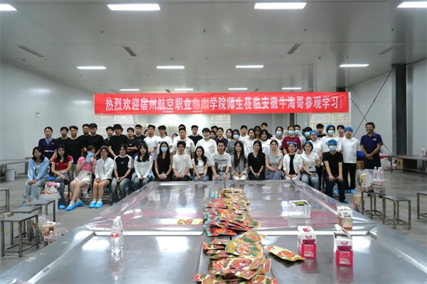 本次大赛由安徽牛海哥零食有限公司、宿州市扶疏亭食品有限公司大力赞助,为提升直播的专业度与深度👺,在两家企业的全力支持下,参赛学子们深入工厂一线🧏🏻♀️,零距离体验产品特性与生产流程👨🎓,为即将到来的直播大赛积蓄能量、做足准备☠️。
