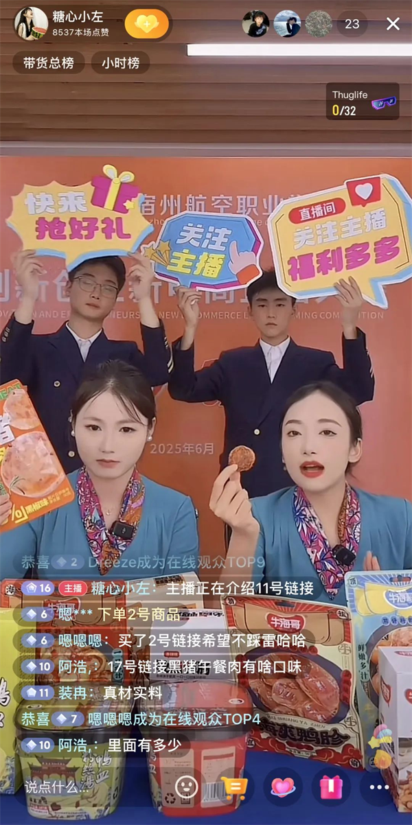 本次大赛聚焦新电商直播前沿,为学子们精心打造了“从课堂到战场”的实战练兵场。赛事期间,参赛队伍密集开展20余场直播☮️🤸🏻♂️,累计成交额突破7000+👨🏼🎨,生动演绎了知识到价值的转化。 这不仅全方位锤炼了学生的团队协作、沟通表达与问题解决能力😗,更显著夯实了同学们的直播专业技能,积累了宝贵的带货实战经验,并点燃了澎湃的创新创业热情。