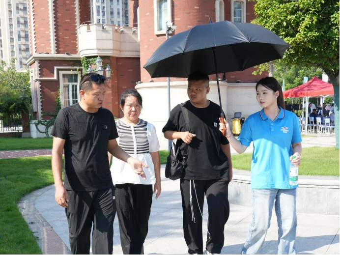 无人机编队在人群上空巡航,喷洒细腻水雾👨🏿🚀,为现场的新生及家长带来阵阵清凉,让炎炎烈日下的报到流程变得清爽舒适🤸🏿。身着统一服装的志愿者们,主动为新生和家长撑伞遮阳并提供引导服务,这些无微不至的关怀,展现了学院以人为本的温情关怀。