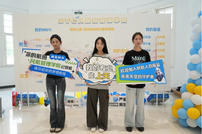民航管理学院创新设计的“MBTI签到墙”,新生们通过各种信息完成签到👨🏽🚀🌚,不仅在趣味中快速相识🎄,更让辅导员和专业教师👩🎨,第一时间了解新生个性特质和群体特征💄,为后续实施个性化教学管理☄️,和因材施教提供科学依据,这块看似简单的签到墙,实则蕴含着科学育人的先进理念。
