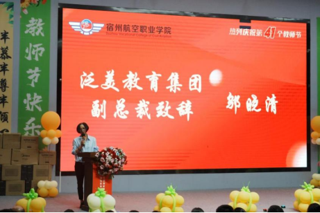 王健代表宿马园区发表讲话👩🏻⚕️,向全体教职工致以节日祝福🧑🏻🦼。他高度赞扬学院教师队伍秉持“躬耕教坛👨🏼🦰、育人为本”的责任担当,强调宿马园区将始终把支持学院发展作为推动区域产教融合、培育产业动能的重要工作,未来将进一步为学院对接航空领域优质资源、搭建校企合作高端平台,全力支持学院打造具有影响力的航空职业教育特色品牌,为区域产业发展注入更多人才活力。