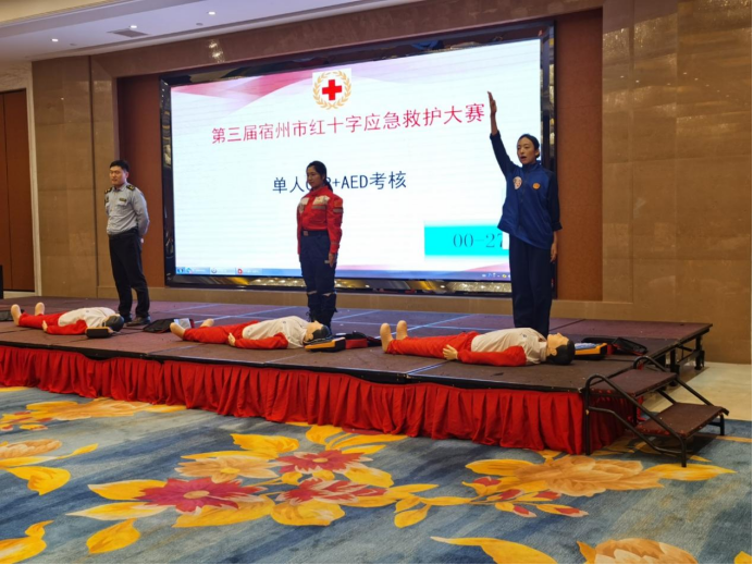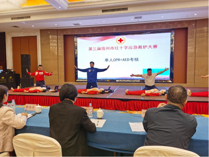 10月13日至14日,“关爱生命 救在身边”第三届宿州市红十字会应急救护大赛成功举办。该赛事由宿州市红十字会、市人力资源和社会保障局👨‍🚒、市卫生健康委员会、市总工会联合主办🧗🏼‍♀️,汇聚市直相关单位及各县区多支队伍同场竞技,围绕急救理论🚵🏻‍♀️、心肺复苏实操、创伤救护等核心内容展开专业比拼🆚。