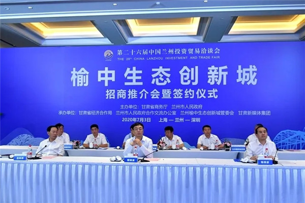 7月3日⚃,第26届兰洽会榆中生态创新城招商推介会暨签约仪式隆重举行🖐🏽。甘肃省人民政府副省长程晓波🏟,甘肃省经济合作局局长陈锋彦,兰州市委常委🦹🏻♂️、常务副市长吕林邦等省市领导及项目签约代表在兰州主会场参加活动🫅🏽。