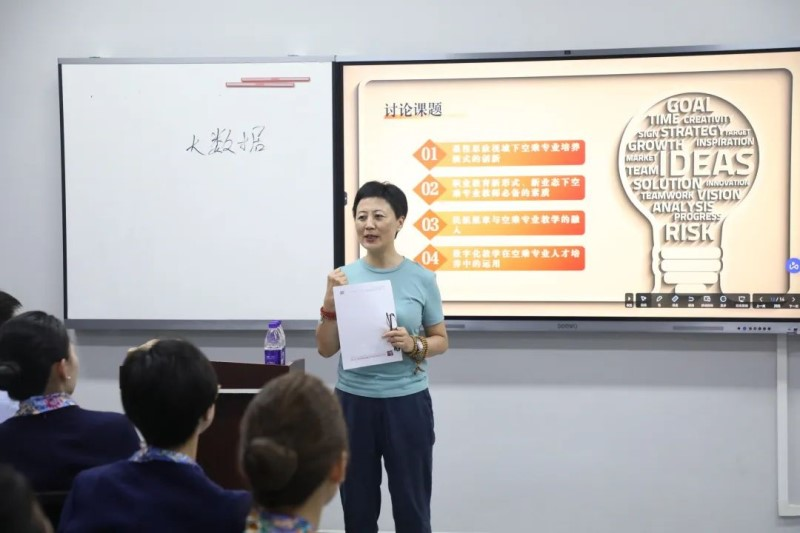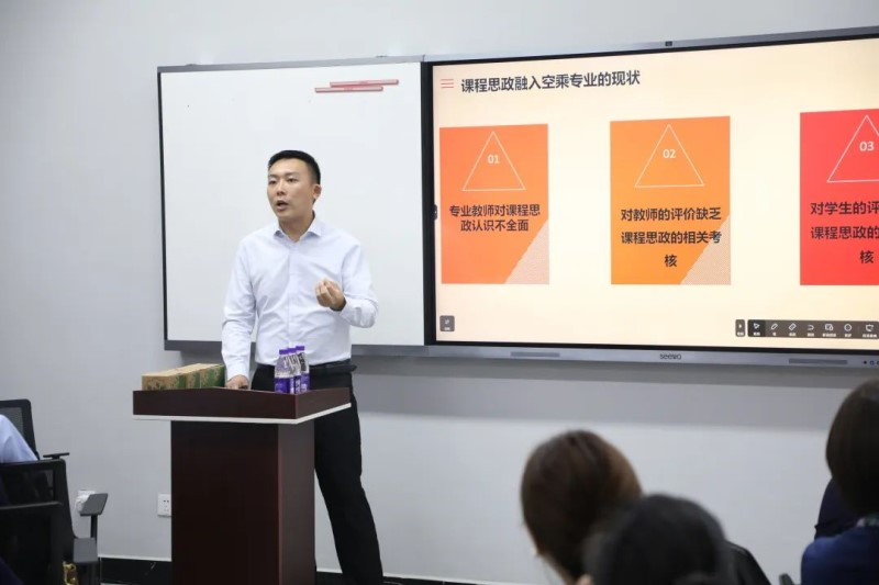 培训最后,围绕课程思政视域下空乘专业培养模式的创新,职业教育新形式、新业态下空乘专业教师必备的素质,民航规章与空乘专业教学的融入等主题,各小组代表纷纷上台说课,空乘教师们从整体课题设计、科研实施过程、具体推进措施等一一进行了分析🧑🏽💼,并对“科研需要”“研究思路”“科研目标的确定”“方案选择与制定”等具体内容进行了详细讲解。