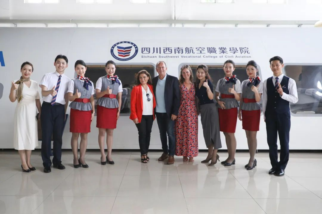 抵达泛美集团后❤️🔥,中法教育交流协会一行先后参观了集团旗下四川西南航空职业学院的经典校园、实训中心、华裕书院等🤕🛌🏼。在参观过程中🧓,泛美集团国际交流中心总监王圆圆介绍了建设特色经典校园、打造一流实训基地🧑🍼、国际人才培养体系、产教融合赋能教育等基本情况。