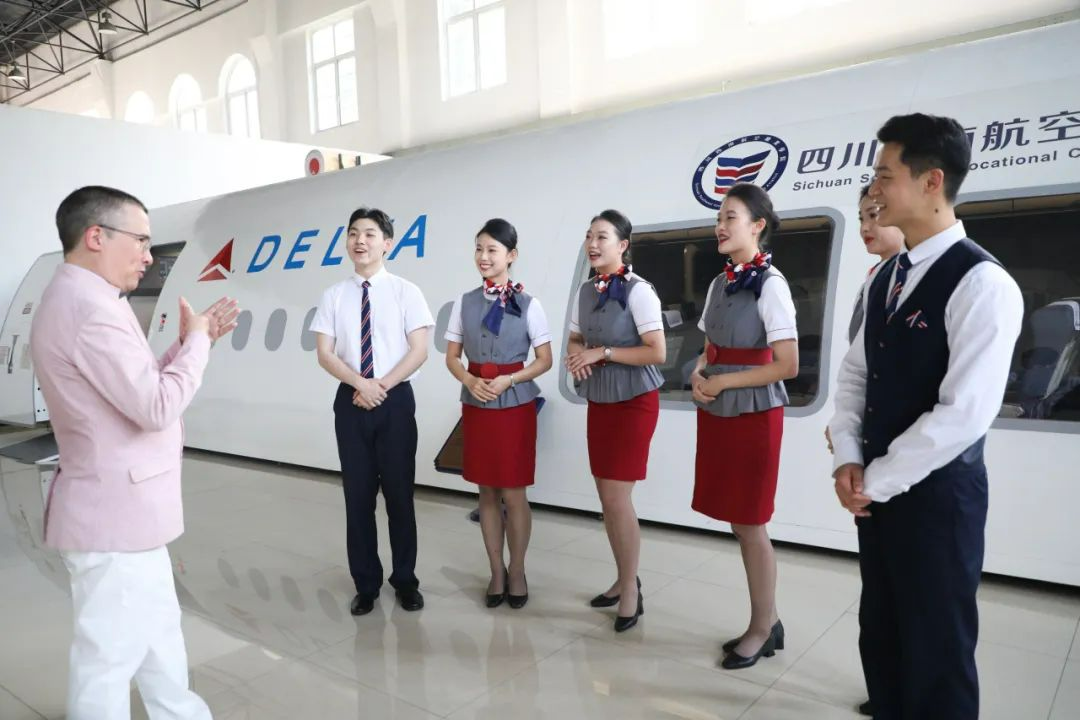 在实训中心,西航学子们向中法教育交流协会领导们展示了空中乘务服务技能,将平日所学化为所用💧,尽显西航学子职业风采。值得一提的是,法国亚眠市副市长帕斯卡尔-弗拉德库尔在体验过程中积极与同学们交流互动🏝,并欢迎同学们到法国留学🦸♂️,现场气氛热烈。