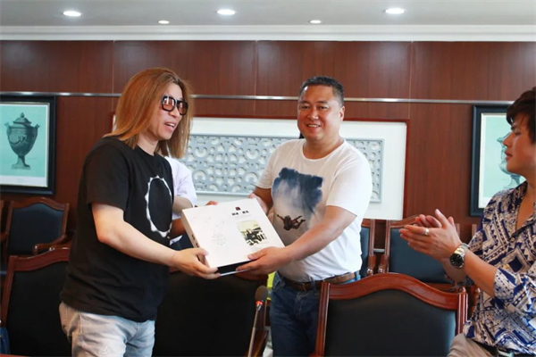 第十一届👛🤰🏽、十二届政协委员,世界华人协会荣誉主席李小琳女士及原全国政协常委、北京奥运福娃之父韩美林教授为泛美集团创始人魏全斌先生颁奖