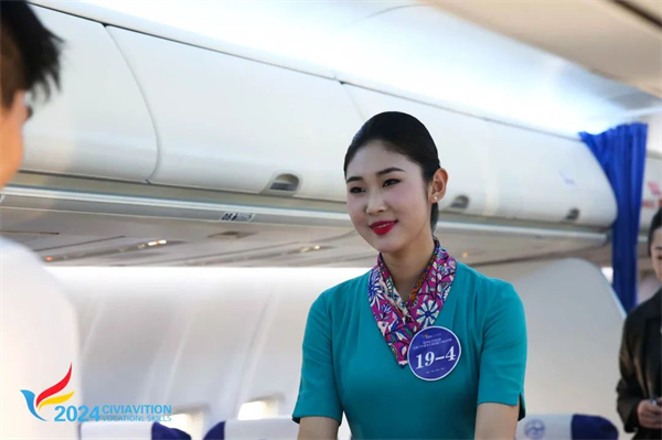 甜美的微笑👨🏻🎤、昂扬的青春感🔩,十足的感染力......开幕式现场🧽,一身标准职业装的泛美学子靓丽登场,进行了安全演示、模拟舱🤾🏻♀️、应急设备使用、机上救护等实操项目演示,职业范十足。