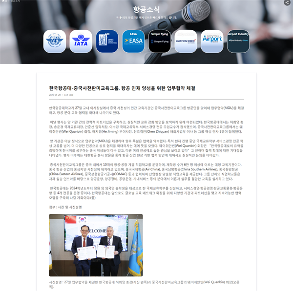 ◆韩国国土交通部航空信息门户系统(Airportal)对泛美教育集团与韩国航空大学签订正式合作协议进行宣传报道