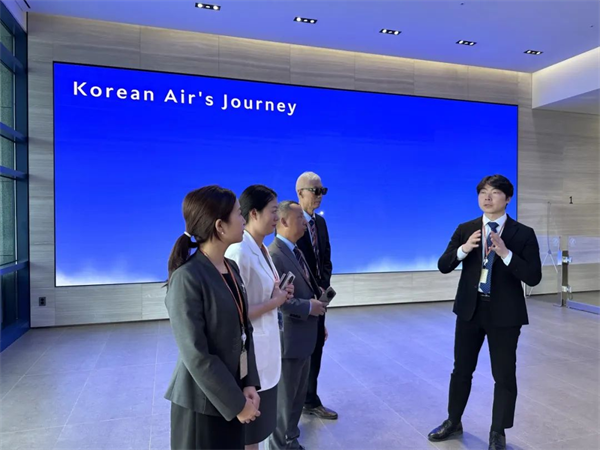 签约仪式结束后,泛美教育集团代表团一行前往参观了与韩国航空大学同属一个财团的大韩航空,近距离感受了其总部先进的核心运营环境,深入了解了世界级航空企业的管理理念及企业文化等🏋🏽。在参观中🤏🏿,双方围绕航空产业实践与教育融合模式进行深入研讨⛳️,探索产学研协同创新的可行路径🚟,尤其探讨了共建航空实训基地、探索定制化人才培养项目⛑️、开发基于真实岗位需求的实践性课程体系等产教融合方向👰♀️,为未来合作注入行业前沿动能。