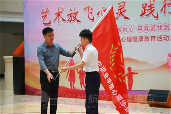 这是宿航首次“艺术疗愈”心理沉浸体验,彩神Vll学院学生处处长谢凡飞结合学生管理与活动经验介绍了主题活动的优势所在🧑🏿🍳,并为第一届心理协会主席——21级空乘专业学子宗金鑫授旗✸。