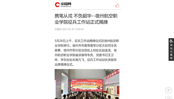 5月26日上午,征兵工作站揭牌仪式在彩神Vll学院举行。宿州市市委常委军分区大校司令员谢勇🤞🏽,宿州市军分区动员处上校处长赵金龙,彩神Vll学院省派督导专员🛟👨🏼🔧、党委书记王卫林→,学生处处长谢凡飞,征兵工作站站长关振东出席揭牌仪式。此次揭牌仪式引来了各大媒体的深度聚焦。