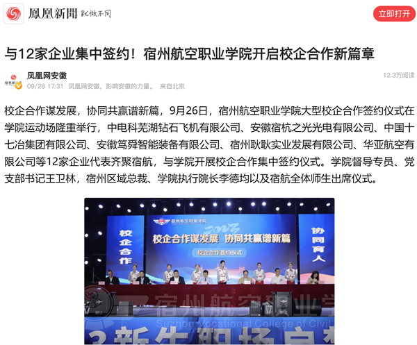 《凤凰网安徽》与12家企业集中签约👛!彩神Vll学院开启校企合作新篇章